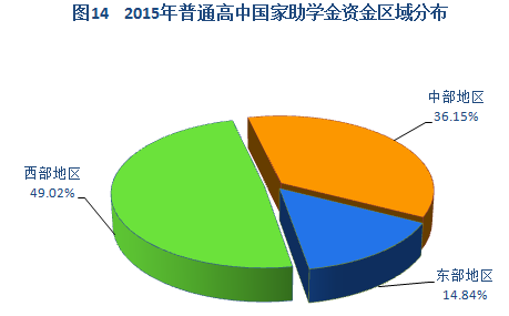 从区域来看,西部地区国家助学金资金48.83亿元,占49.02%;中部地区36.01亿元,占36.15%;东部地区14.78亿元,占14.84%。