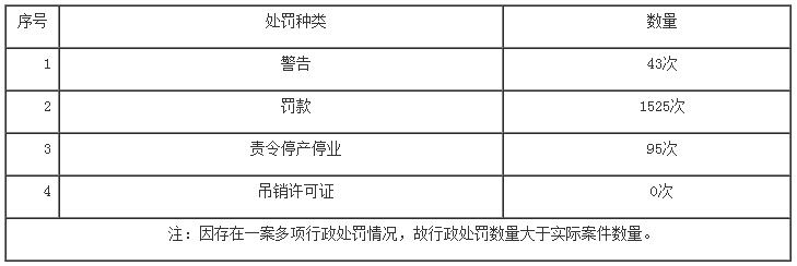 按照处罚种类统计,上半年各级邮政管理部门共作出警告43次,罚款1525次,责令停产停业95次。
